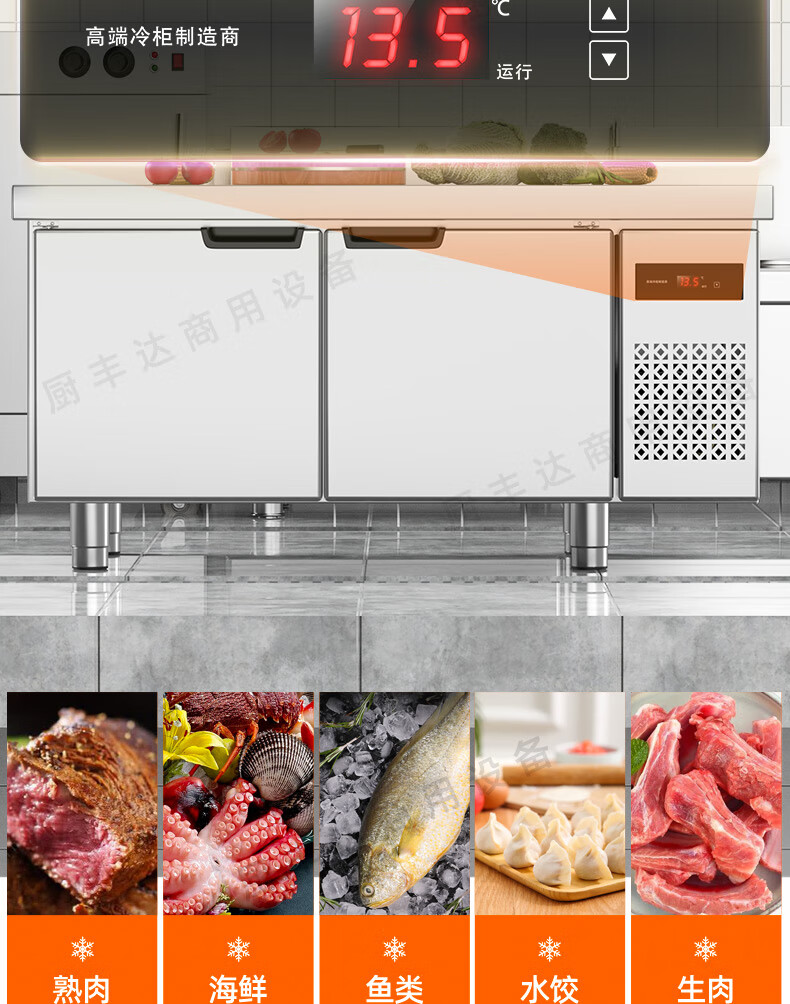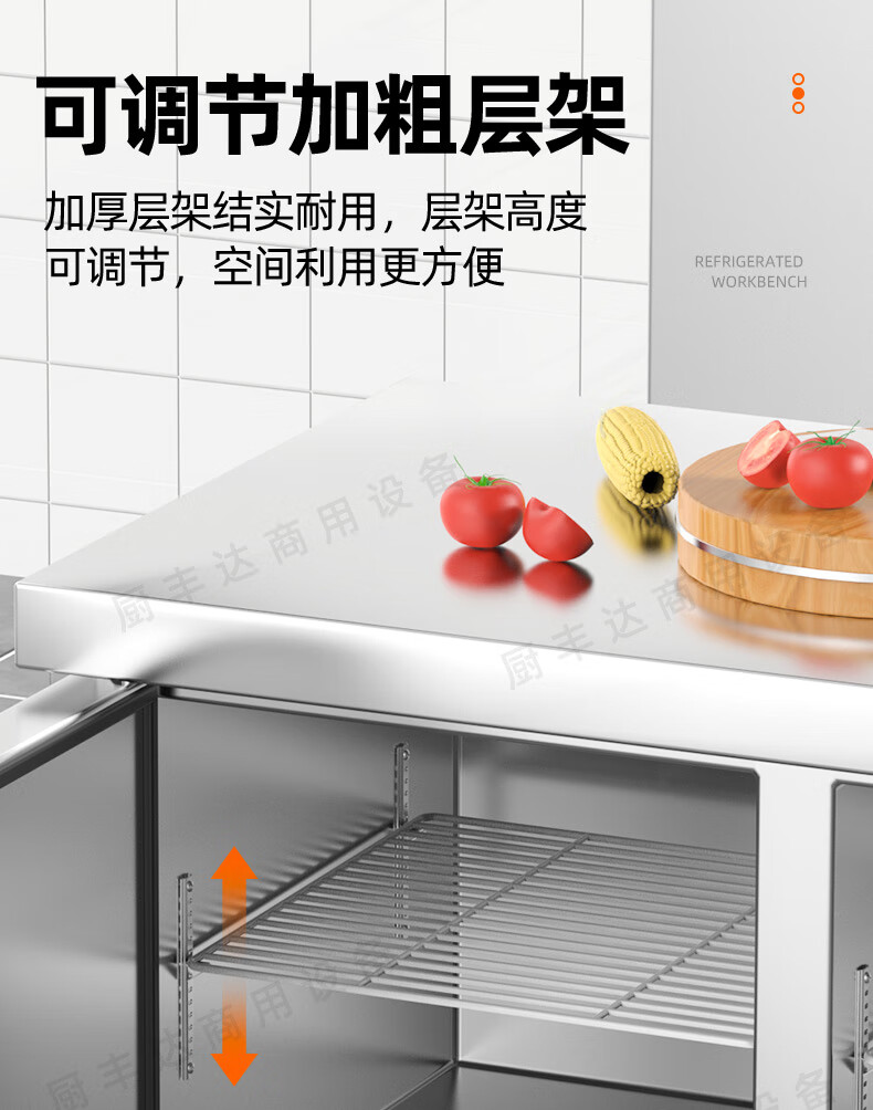 廚豐達冷藏工作臺奶茶店保鮮平冷操作臺冰柜商用保鮮工作臺廚房冰柜工作臺2米全銅管直冷雙溫(其它型號咨詢客服) 自營