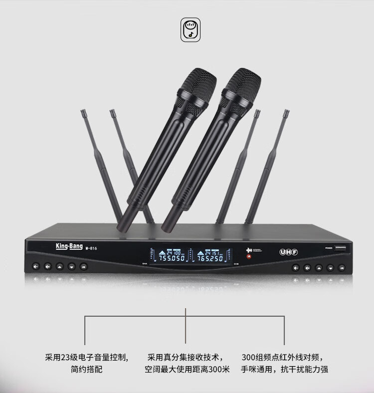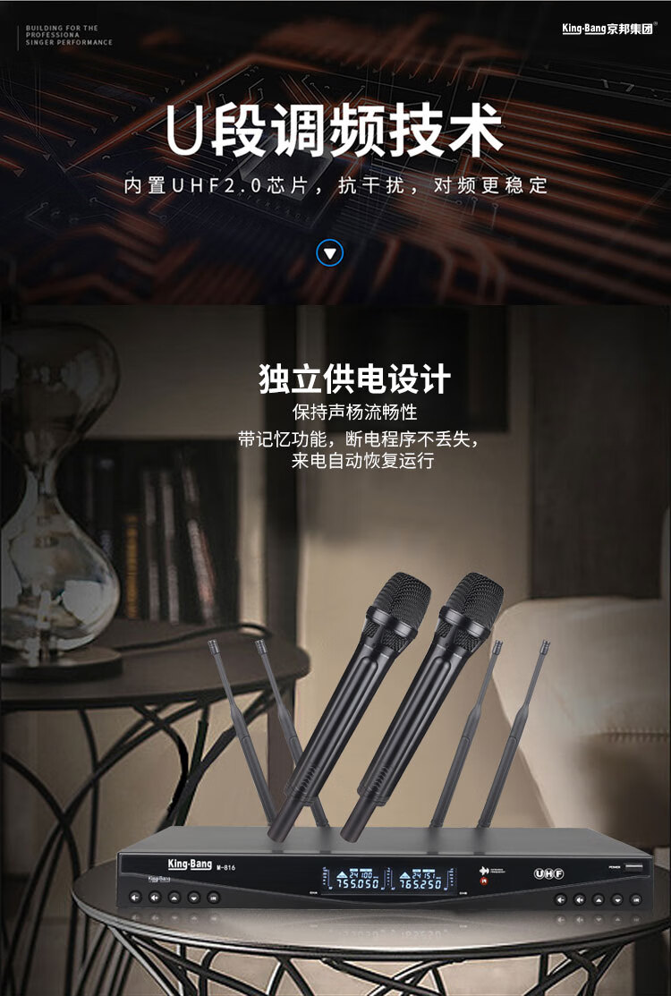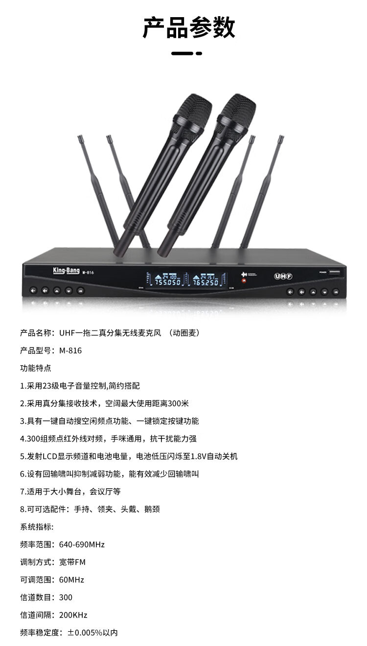 King-Bang京邦M-816UHF一拖二真分集無線麥克風(fēng)動(dòng)圈麥 自營