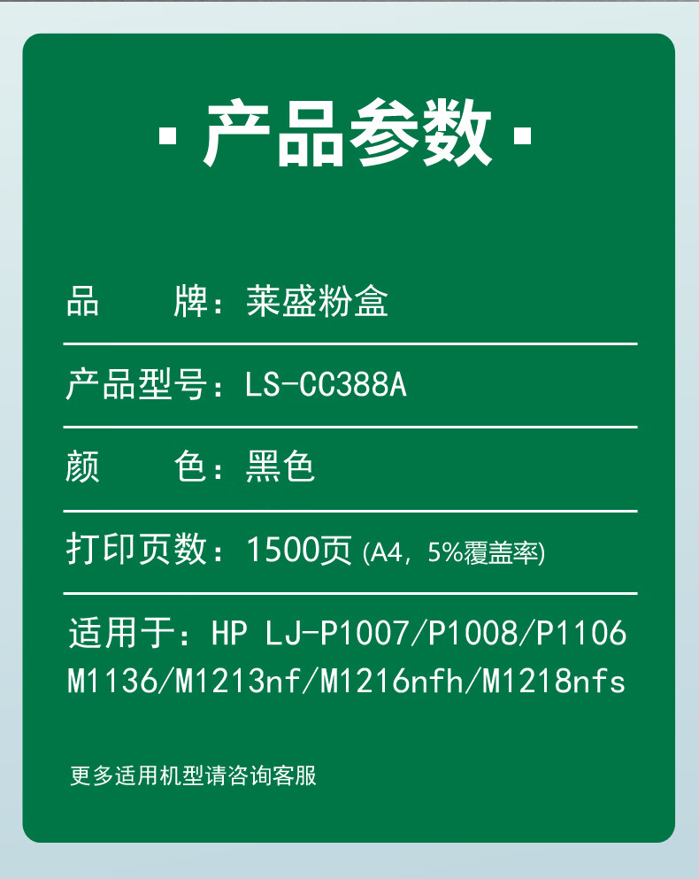 萊盛LS-CC388A硒鼓黑色適用于HPLJ-P1007/P1008/P1106/P1108/M202,M1136/M1213nf/M1216nfh 自營(yíng)