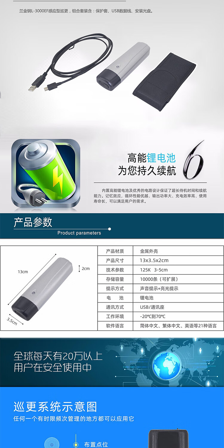 槨俊巡更棒--L-3000EF保安巡邏打點器巡更機巡更器巡檢儀電子巡更系統(tǒng)巡蘭德華云巡6實時照明巡更機4G手機微信查看保安巡更