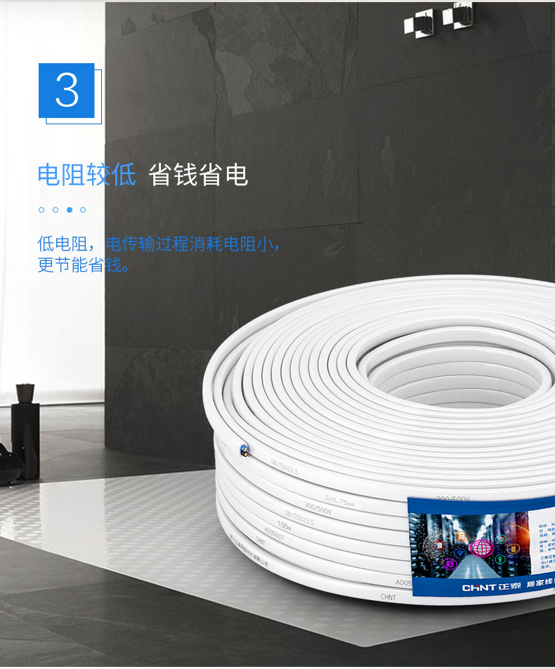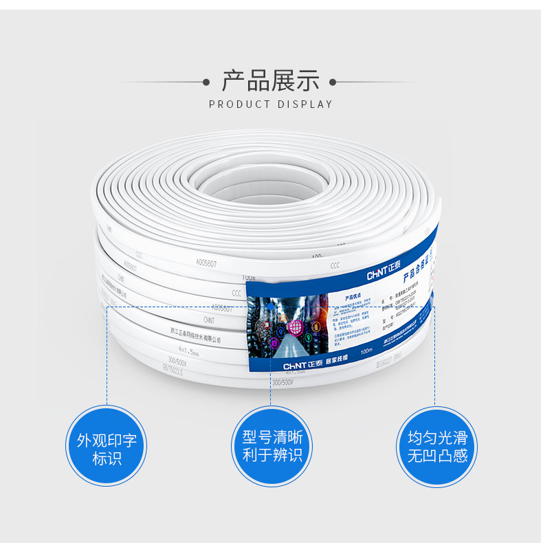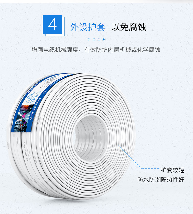 正泰(CHNT)電線三芯護(hù)套線軟線RVV銅芯國標(biāo)銅線RVV白色3芯*4平方(100米) 自營