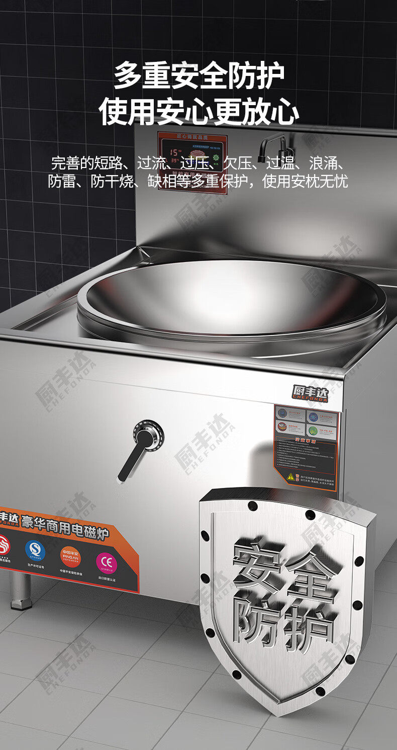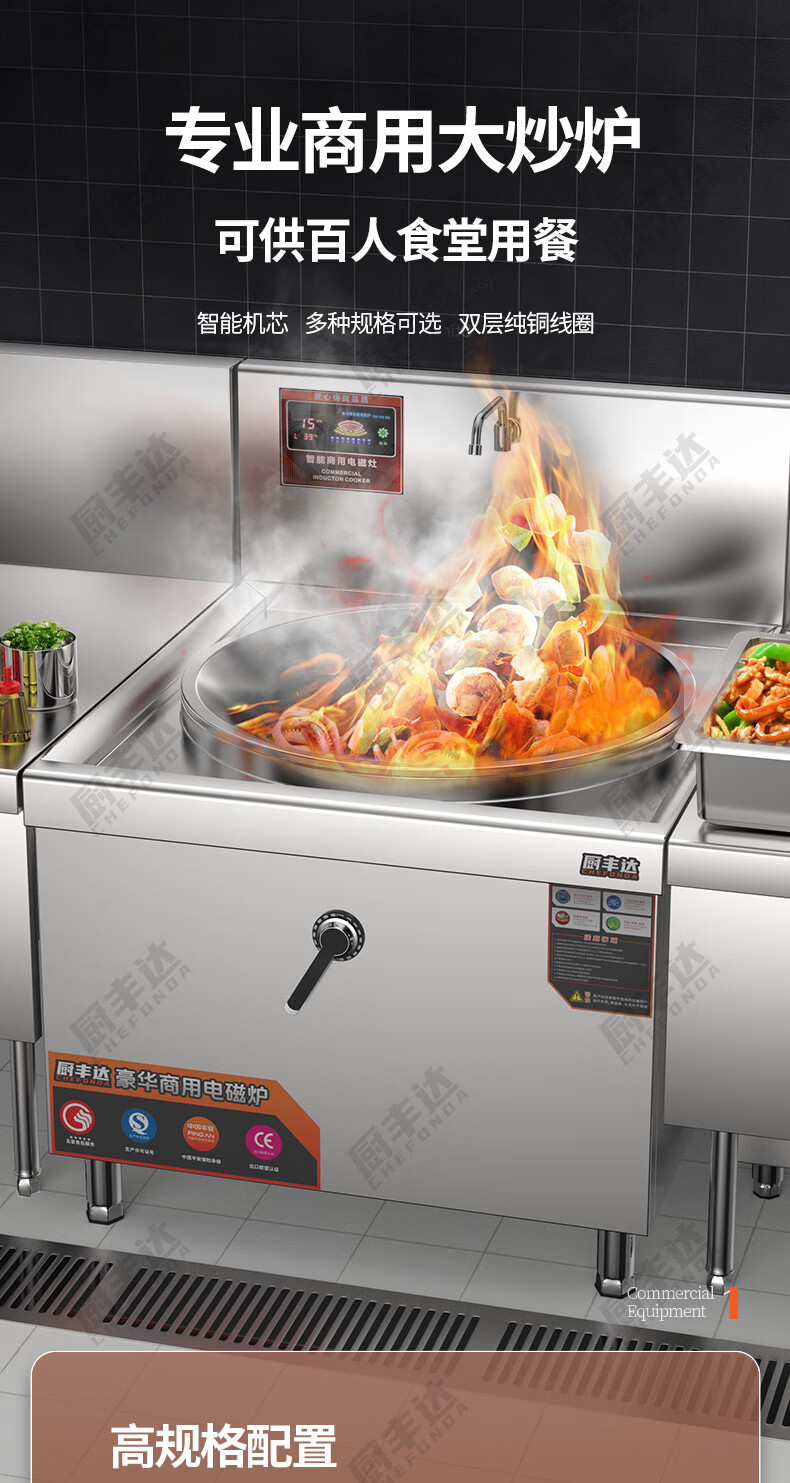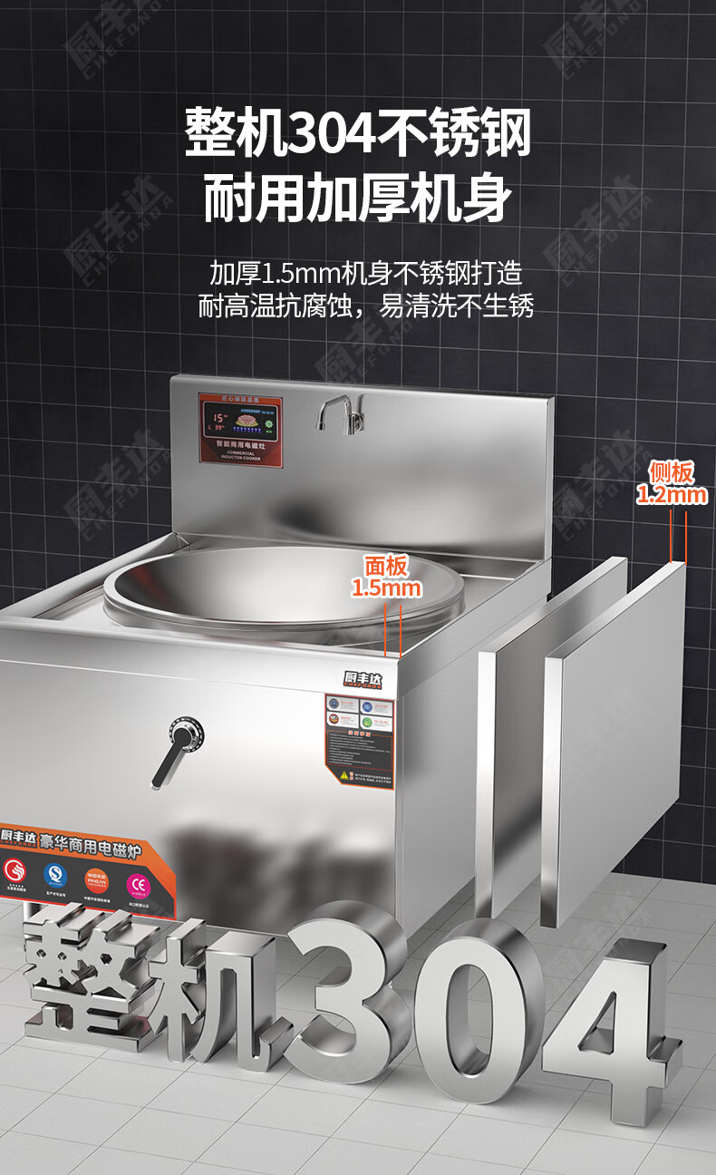 廚豐達(dá)大功率商用電磁爐304商用電磁灶大鍋灶學(xué)校單位食堂專用猛火電炒鍋電磁電灶臺12kw一價(jià)全包