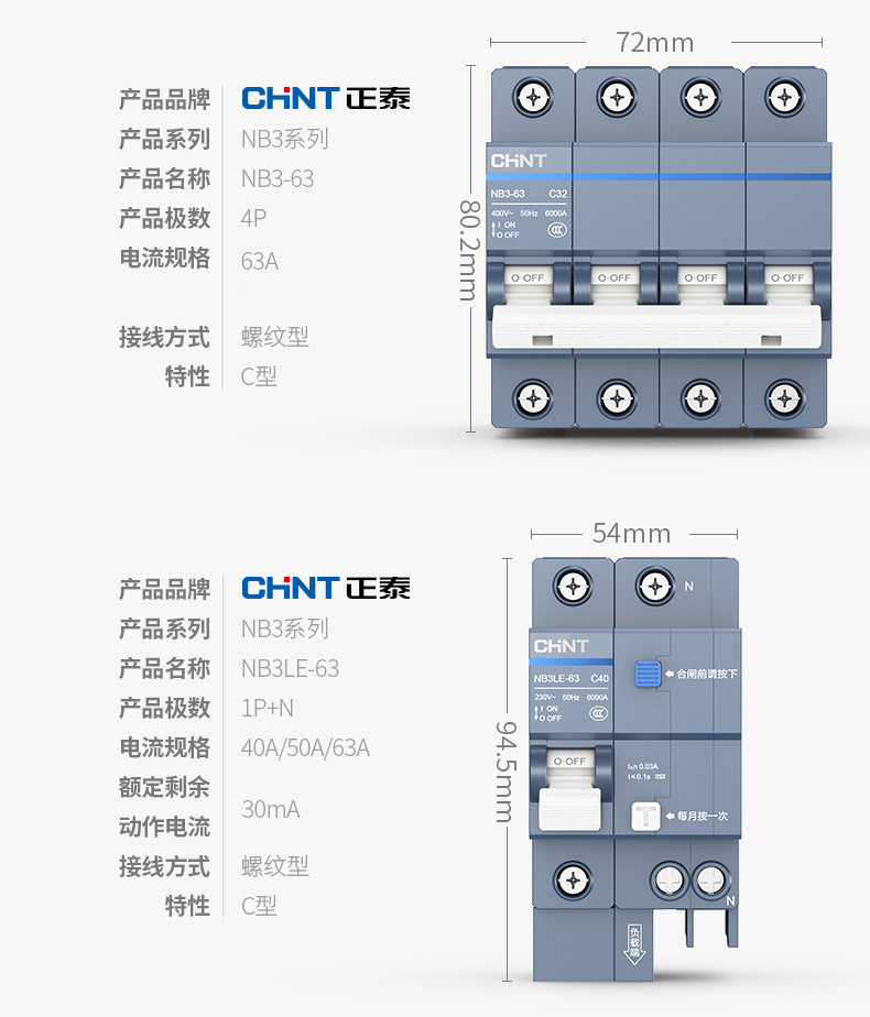 正泰(CHNT)漏電保護開關(guān)斷路器NB3LE-63K4PD32 自營