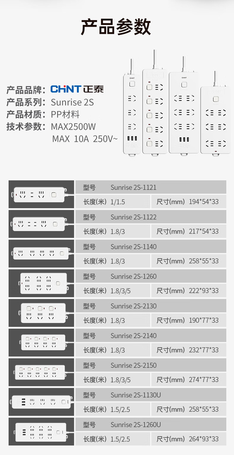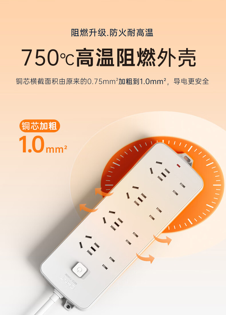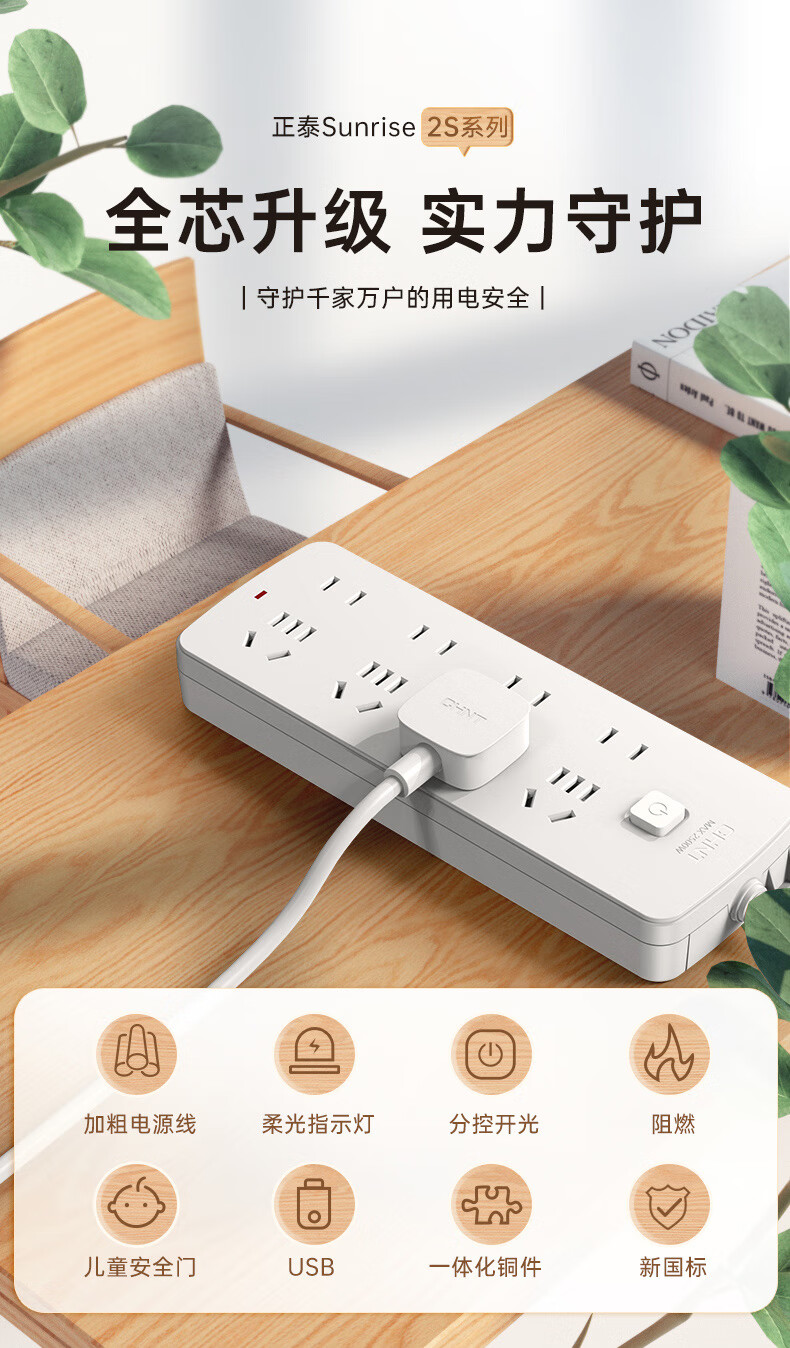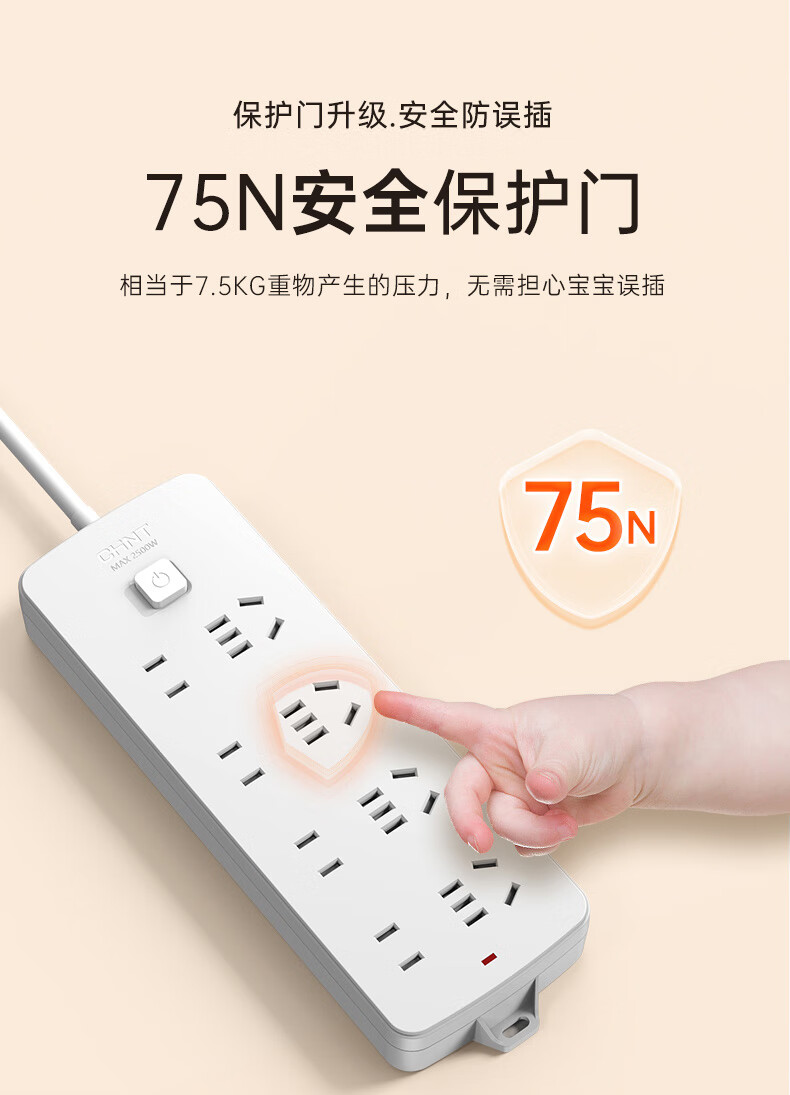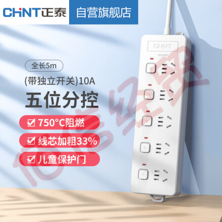 正泰(CHNT)分控插座/插線板/插排/排插/接線板/拖線板5位分控(帶獨立開關(guān))10A2150-5m 自營