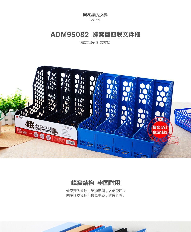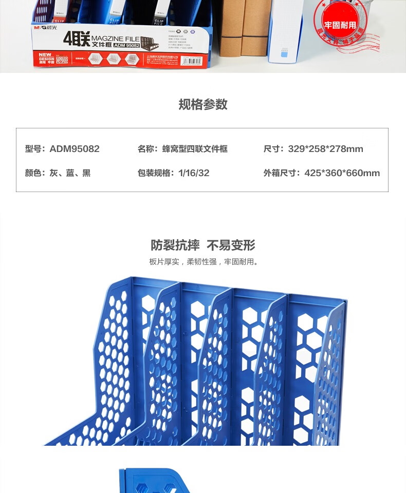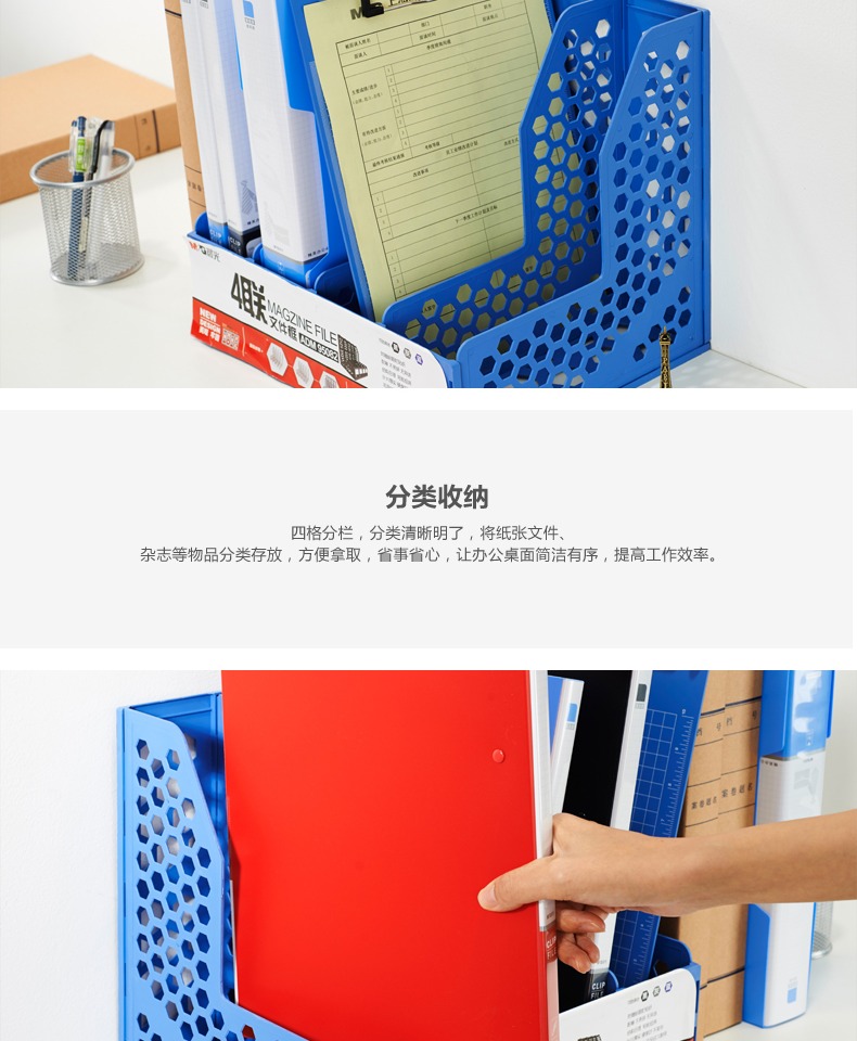 晨光(MG)ADM95082A四聯(lián)文件框文件架子置物架4格文件架資料架蜂窩型鏤空文件欄/4格黑色 自營