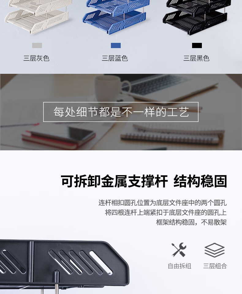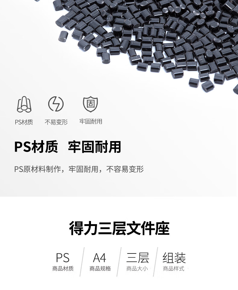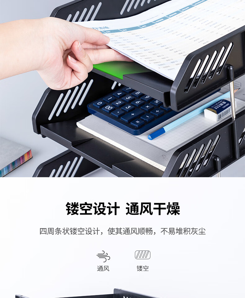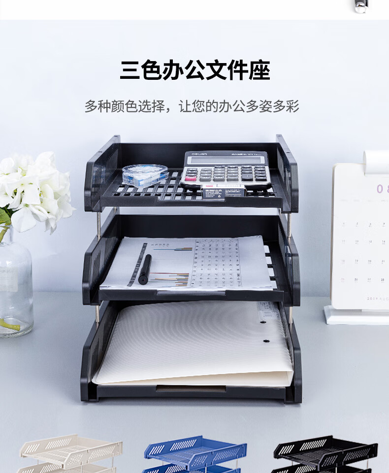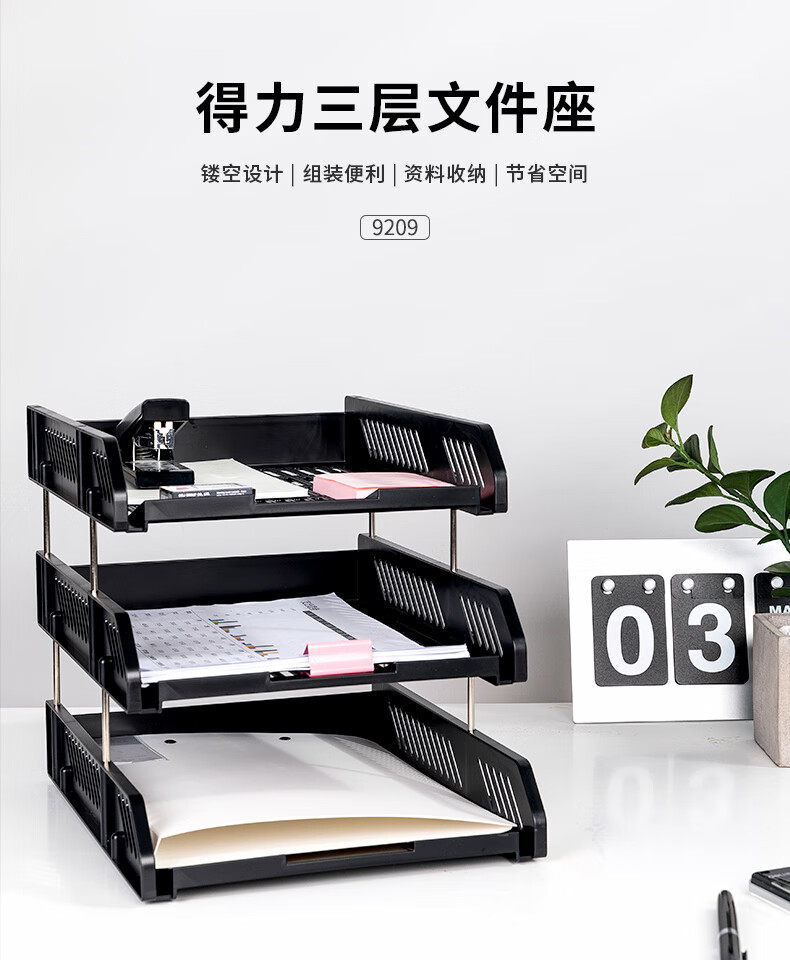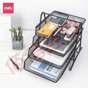 得力(deli)商務(wù)四層金屬文件盤(pán) 托盤(pán)可前后移動(dòng) 高質(zhì)文件座 黑9184 自營(yíng)
