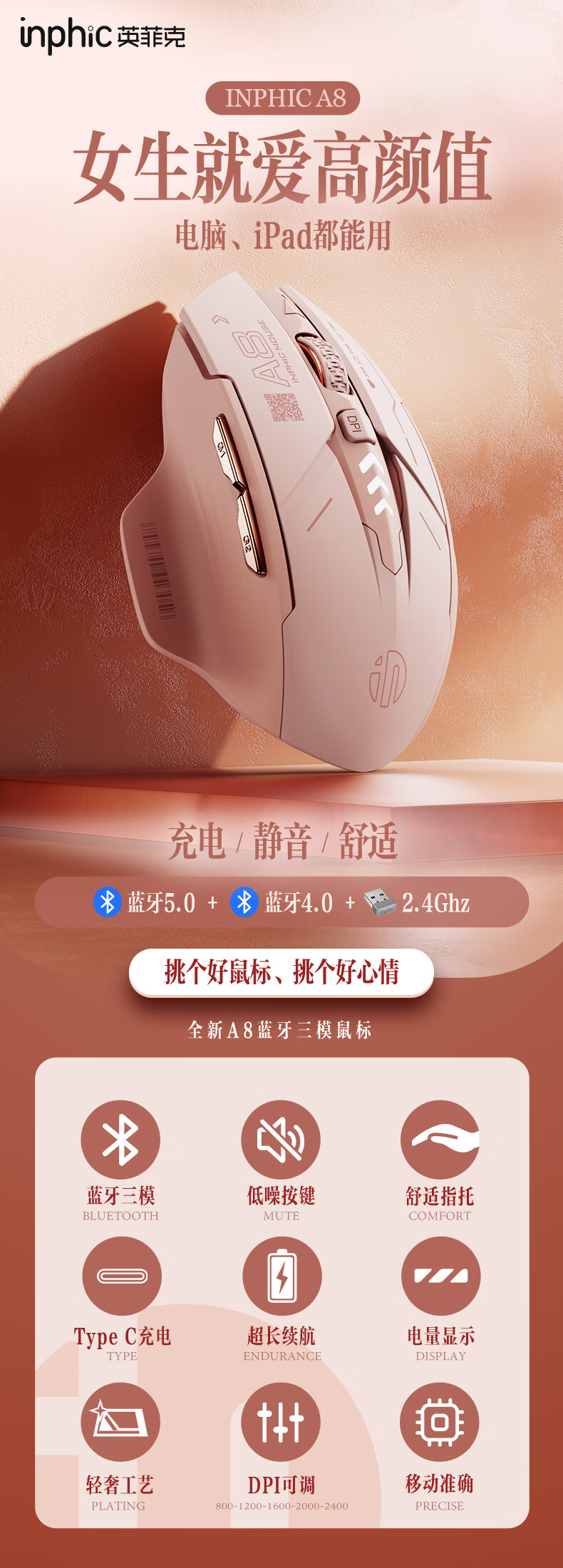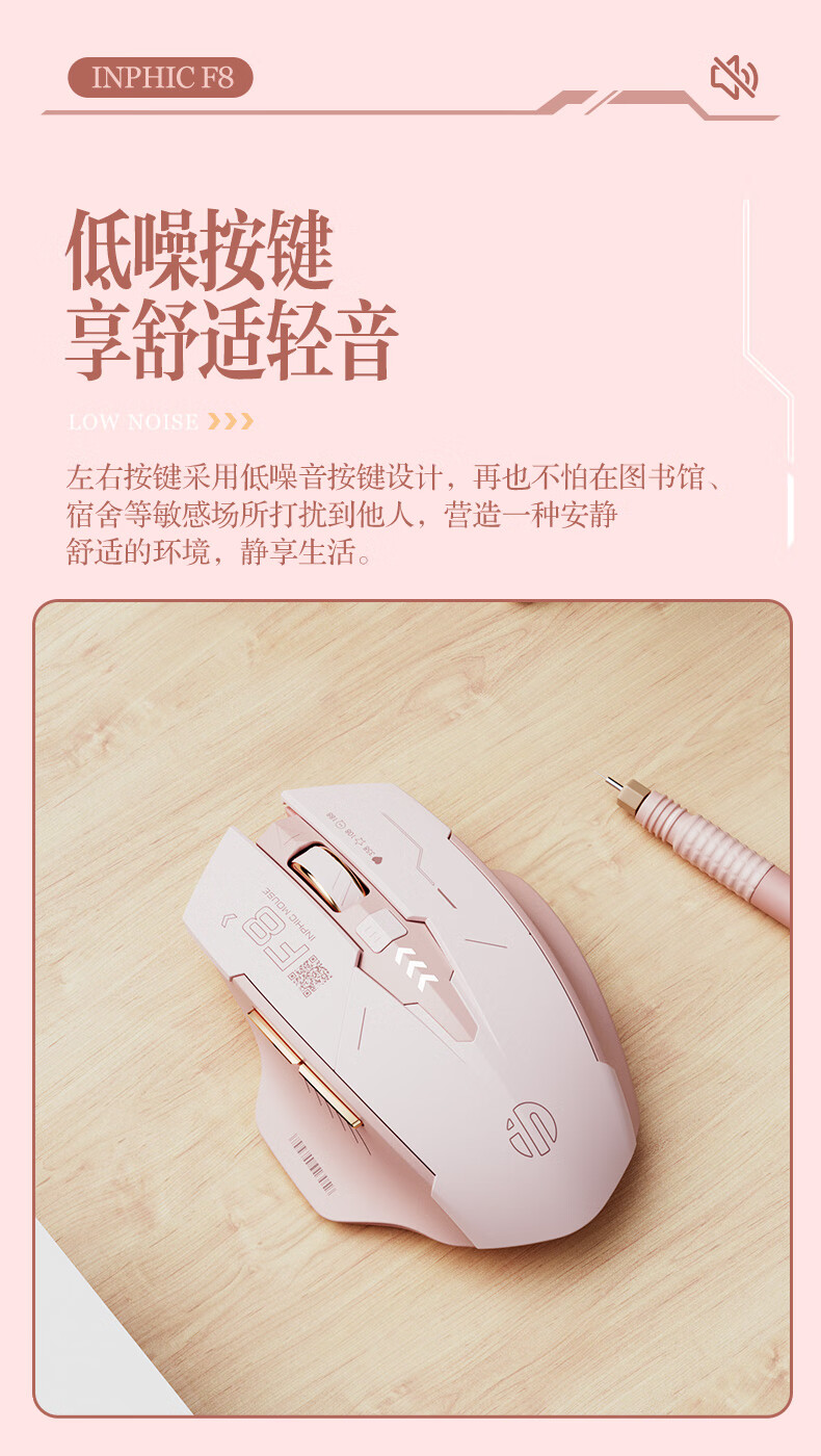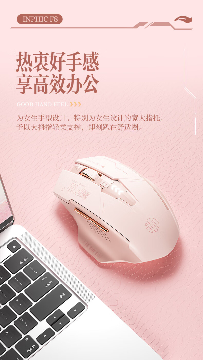 英菲克(INPHIC)F8無線藍牙鼠標充電女生辦公靜音便攜人體工學(xué)適用于惠普華碩華為筆記本電腦ipad平板輕音舒適【無線2.4G+女生高顏值+對稱設(shè)計】F8奶茶色