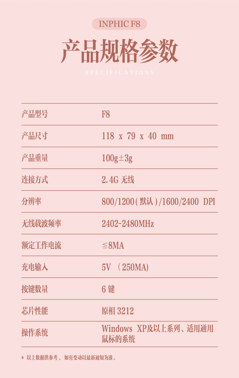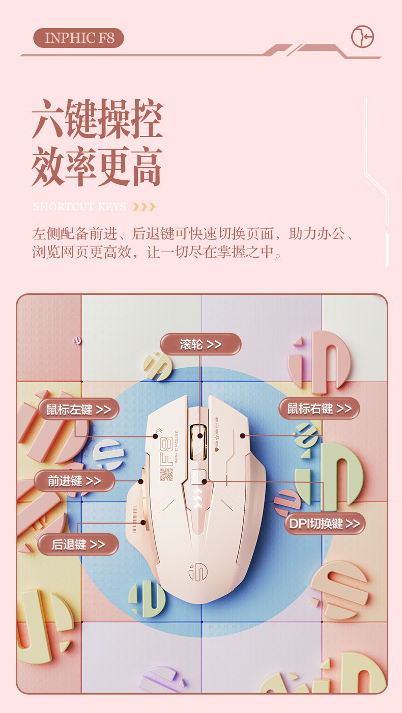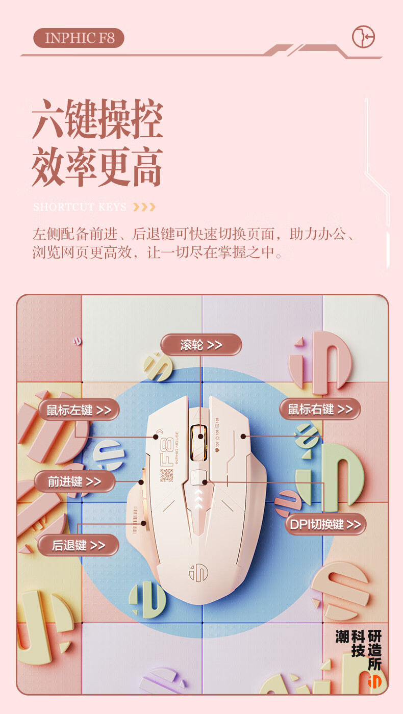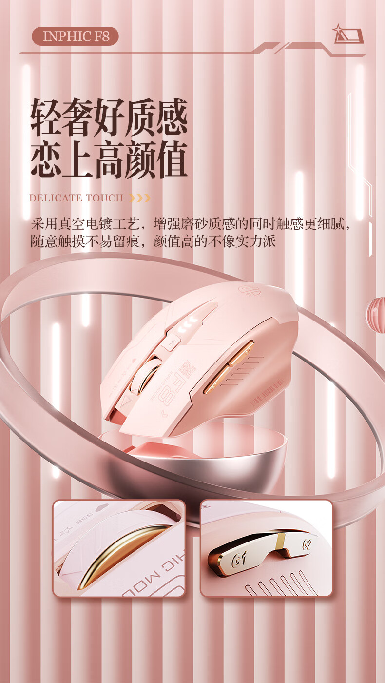 英菲克(INPHIC)F8無線藍牙鼠標充電女生辦公靜音便攜人體工學(xué)適用于惠普華碩華為筆記本電腦ipad平板輕音舒適【無線2.4G+女生高顏值+對稱設(shè)計】F8奶茶色