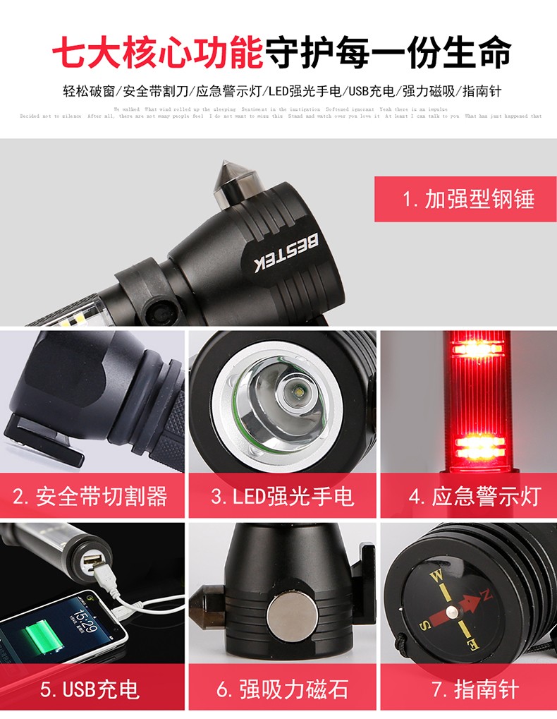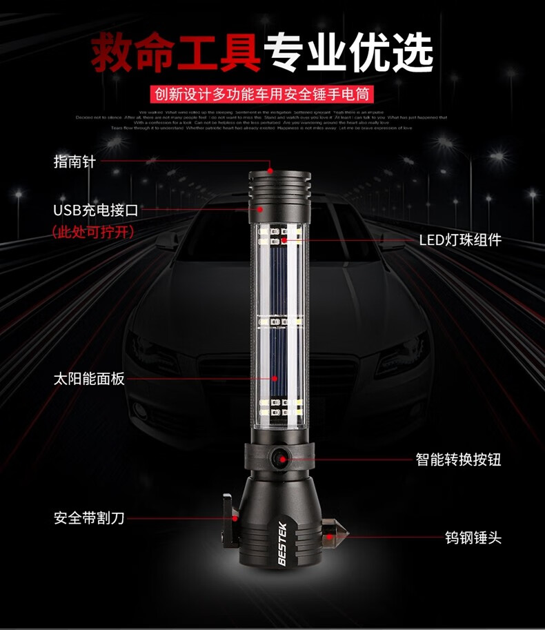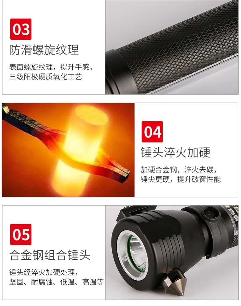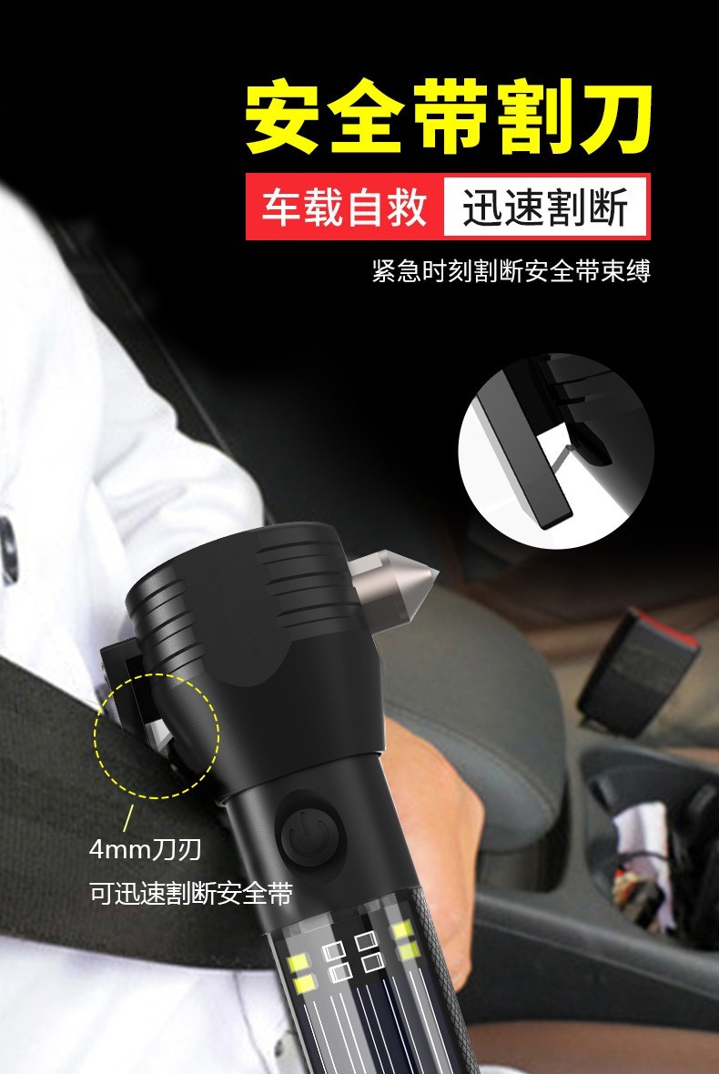 警藍(lán)偉業(yè)多功能車載安全錘救生錘強(qiáng)光手電筒汽車用消防逃生錘破窗器. 自營