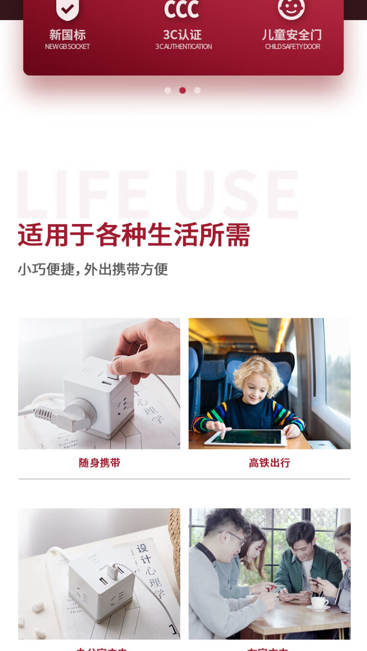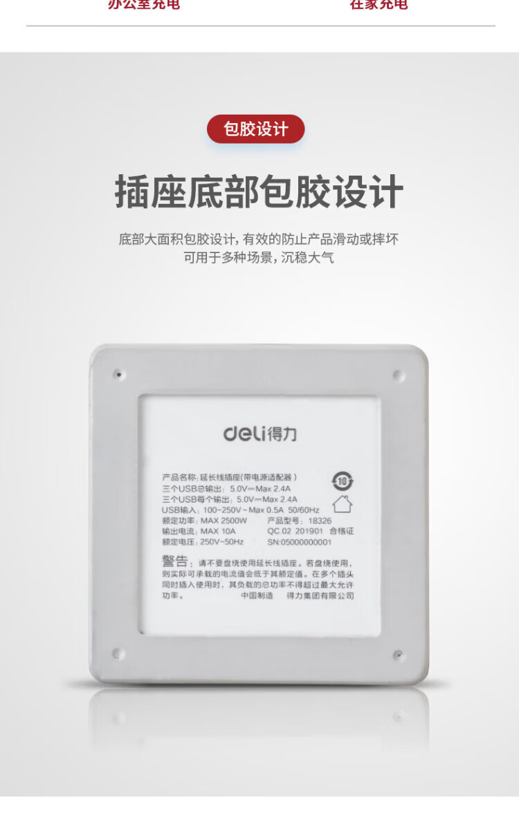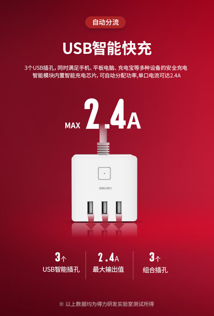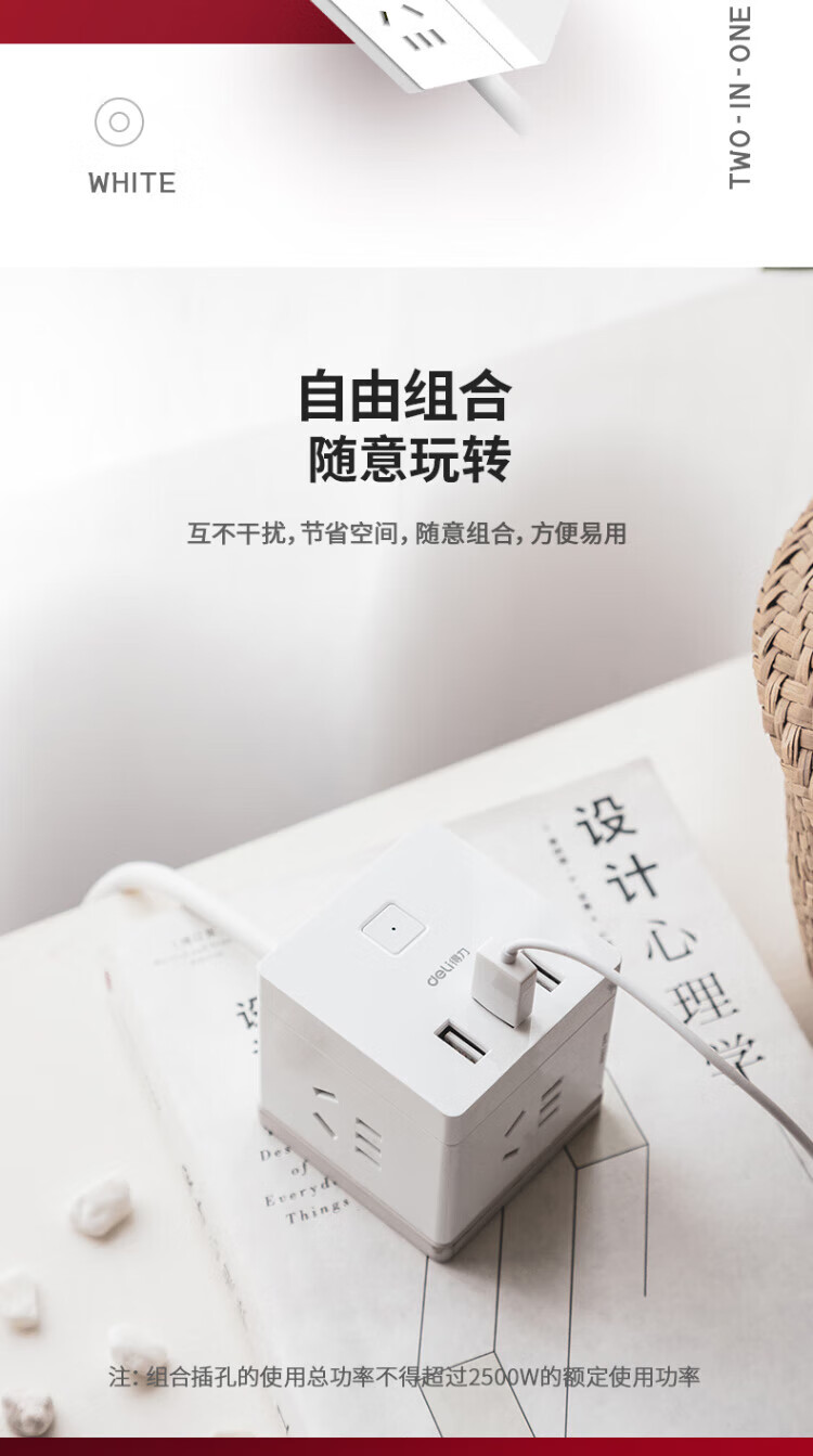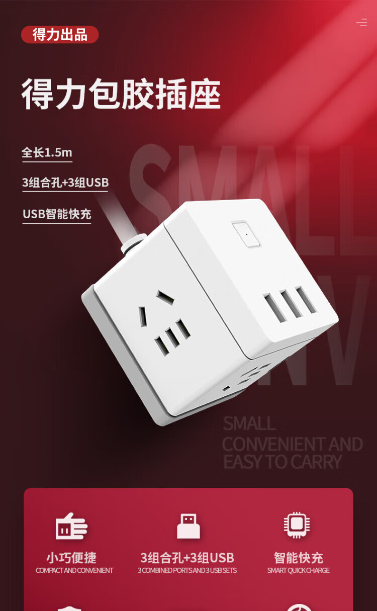 得力(deli)魔方插座智能USB插座插排/插線板/接線板/拖線板/轉(zhuǎn)換插3組+3U1.5米包膠魔方18326 自營(yíng)