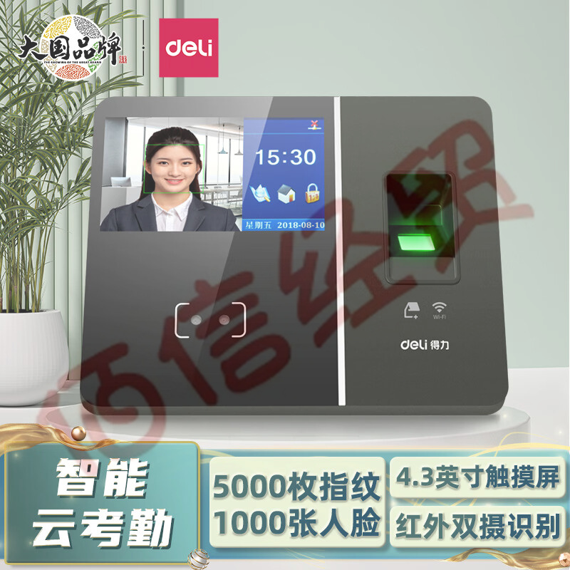 得力(deli)人臉指紋云考勤機wifi打卡簽到4.3英寸觸摸顯示屏13750CS銀黑 自營