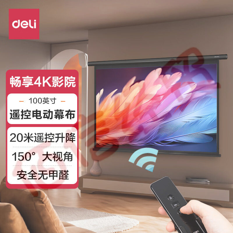 得力(deli)100英寸16:10(兼容16:9)遙控電動(dòng)投影幕布投影布適配堅(jiān)果極米投影儀投影幕布50442 自營