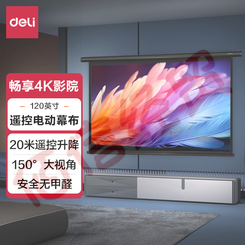 得力120英寸16:10(兼容16:9)遙控電動投影幕布投影布適配堅果極米當貝投影機投影儀投影幕布50443 自營