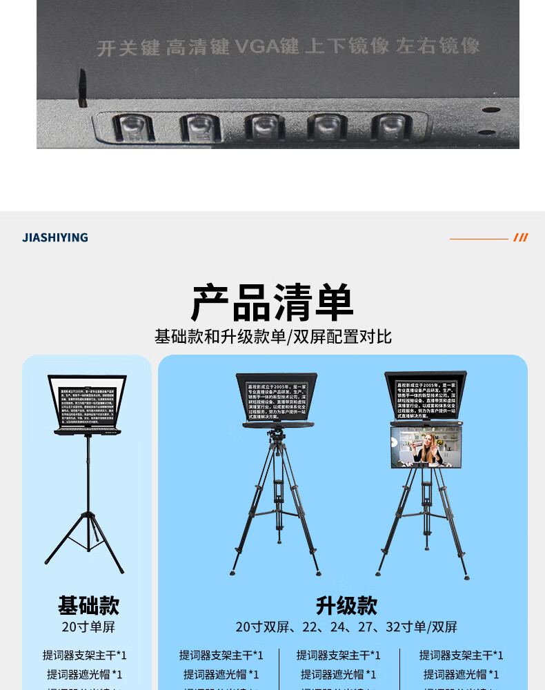 嘉視影24寸提詞器大屏幕js24plus (帶航空箱+三腳架腳輪)
