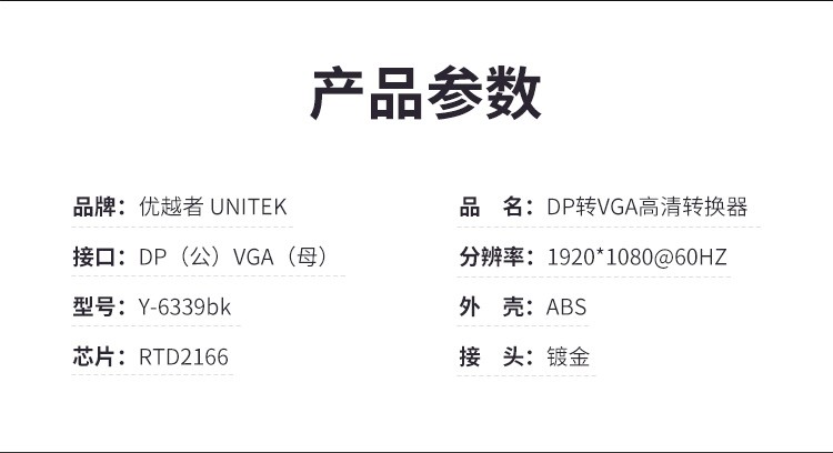 優(yōu)越者(UNITEK)Y-6339BK--DP轉(zhuǎn)VGA轉(zhuǎn)換器 自營