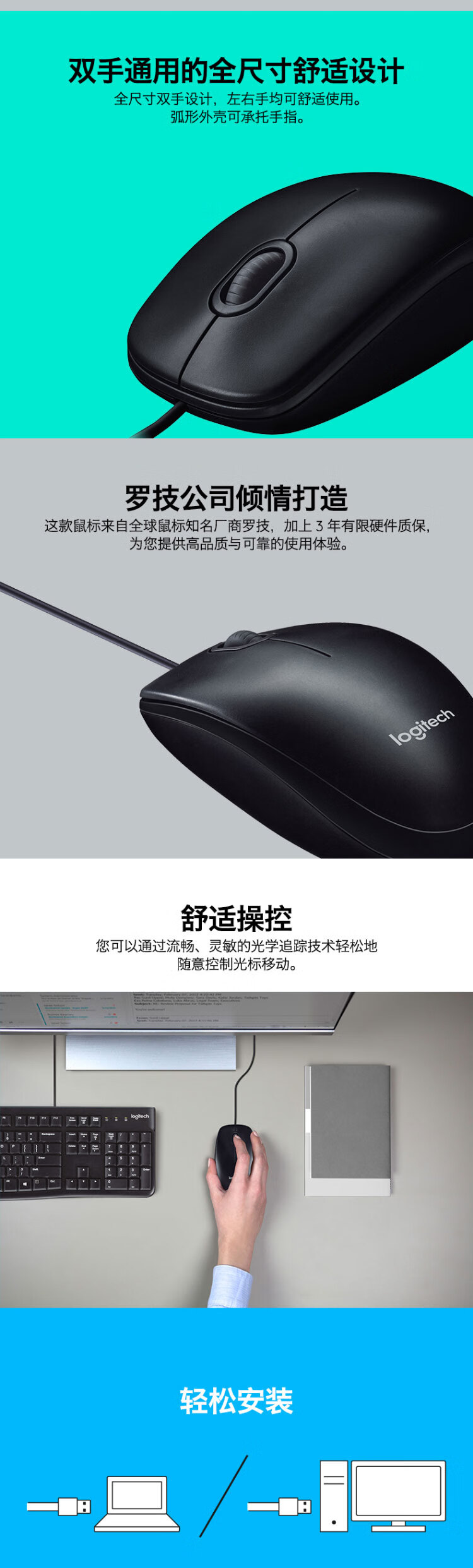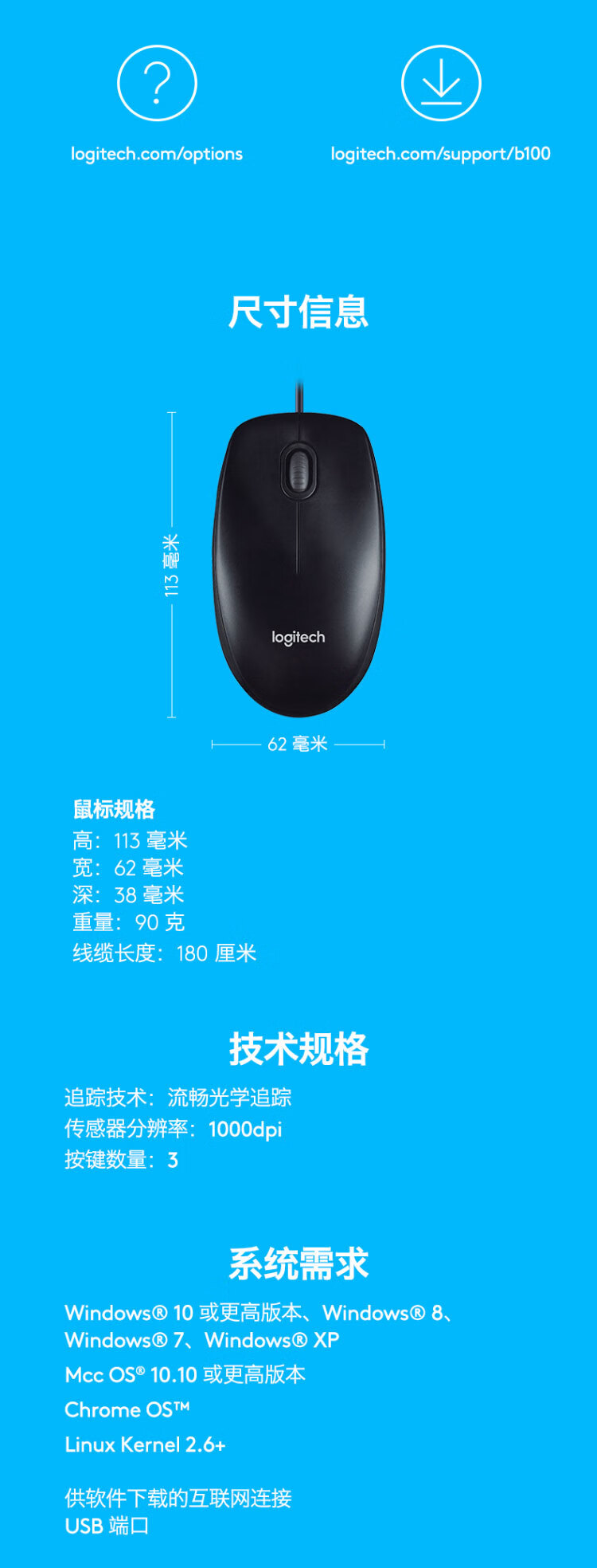 羅技(logitech)B100有線鼠標(biāo)企業(yè)版黑色 自營(yíng)