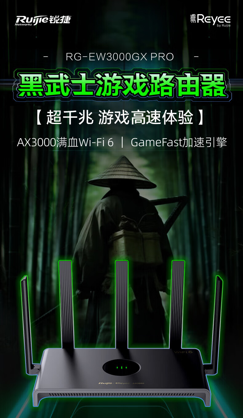 銳捷(Ruijie)無(wú)線5G雙頻全千兆路由器【RG-EW3000GXPRO】