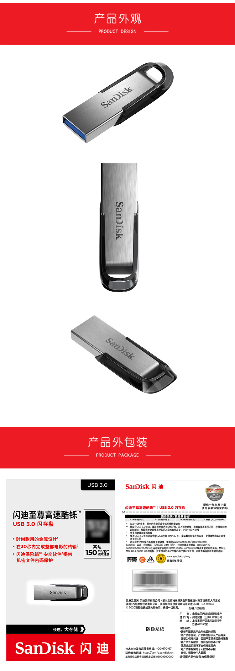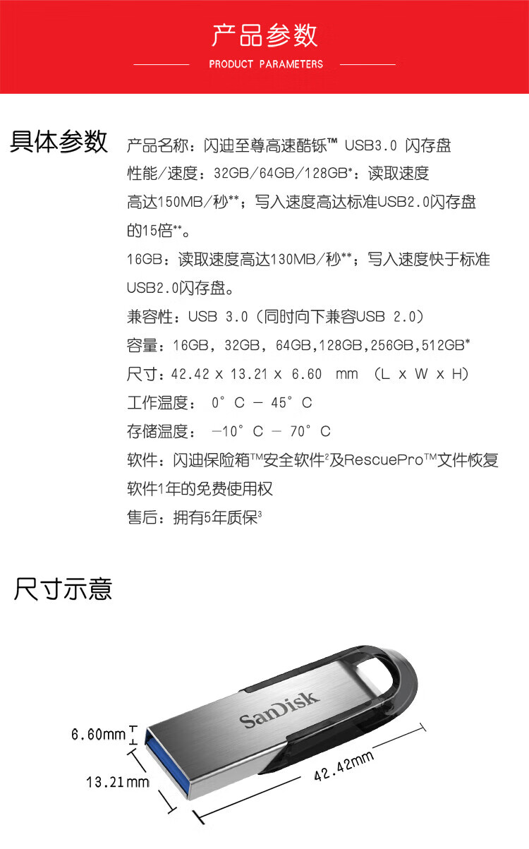閃迪(SanDisk)CZ73黑USB3.064GB讀速高達150mb/s 自營