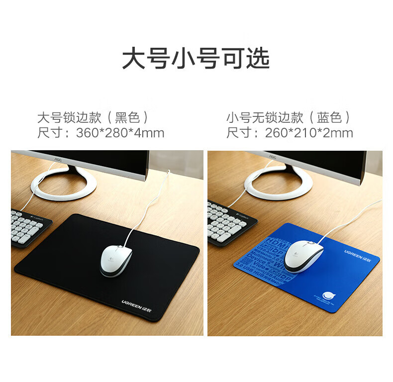 綠聯(lián)鼠標墊【黑色】鎖邊款40405-360x280mm 自營