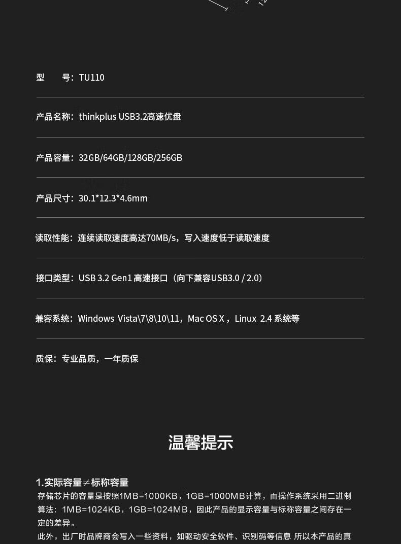 ¥290.00聯(lián)想(Lenovo)U盤32g高速USB3.2車載學習辦公商務大容量便攜閃存優(yōu)盤TU110銀色
