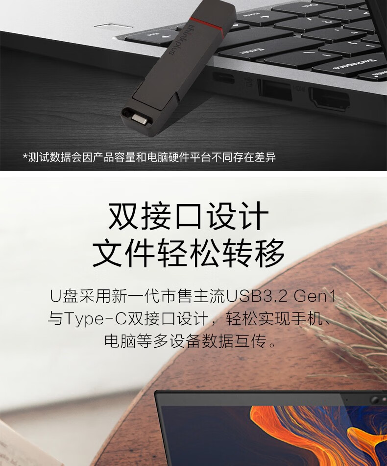 Lenovo聯(lián)想thinkplus雙接口固態(tài)U盤TU200Pro-256G