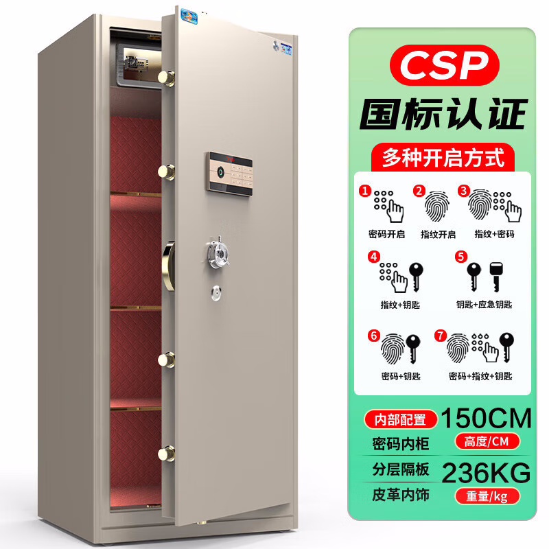 虎牌虎牌保險柜家用小型國標認證指紋密碼辦公保險箱加厚全鋼防盜財務(wù)專用夾萬保密柜 靈耀系列 120cm 自營