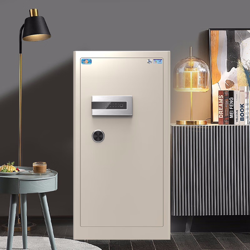 虎牌保險柜家用辦公小型指紋密碼保險箱全鋼防盜床頭保密柜可入墻入柜保管箱博雅系列白色60cm