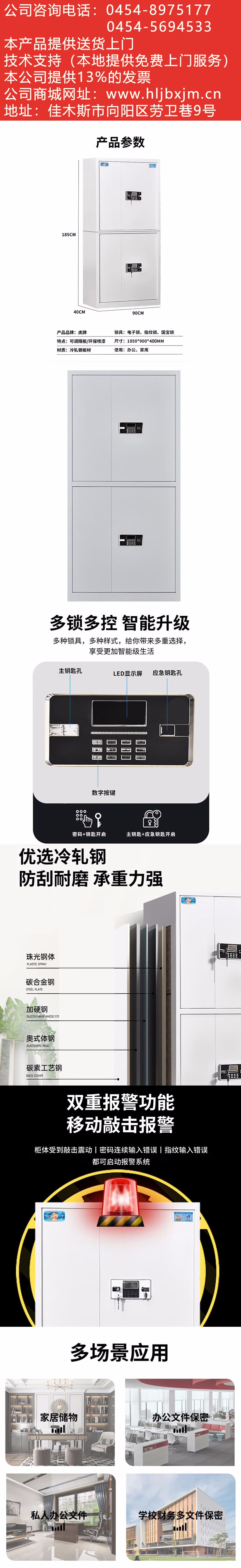 虎牌保密柜電子密碼柜檔案柜器材柜鋼制保密辦公鐵皮柜子白色分體雙門保險柜 ZG系列 185cm 自營