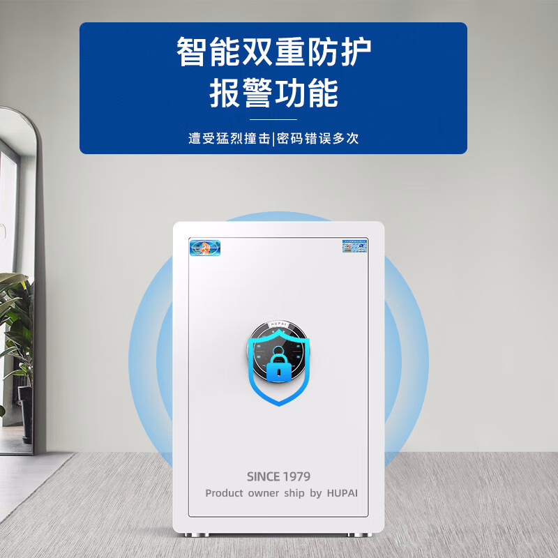 虎牌保險柜家用辦公小型WIFI密碼智能床頭保險箱支持鴻蒙自動開門保管柜 炫彩系列 雅致白 55cm 自營