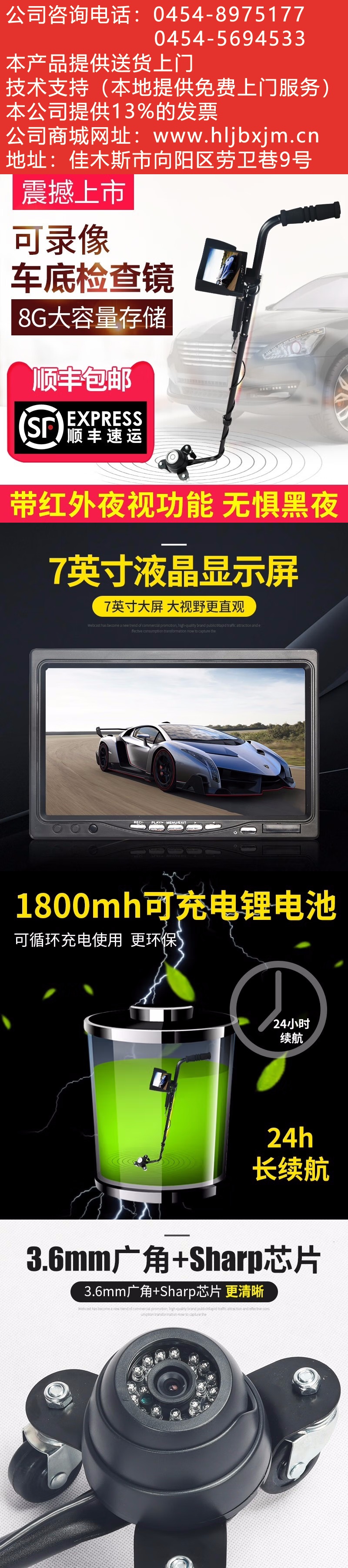 車底檢查鏡車輛汽車安全探測(cè)鏡可視紅外線夜視可充電 帶錄像可存儲(chǔ)功能 自營