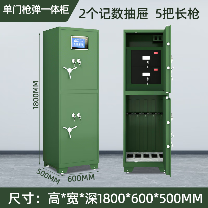匯云星智能槍柜防爆防盜密碼鎖鋼制器械柜軍綠色上下單門內(nèi)含2記數(shù)抽屜 自營(yíng)