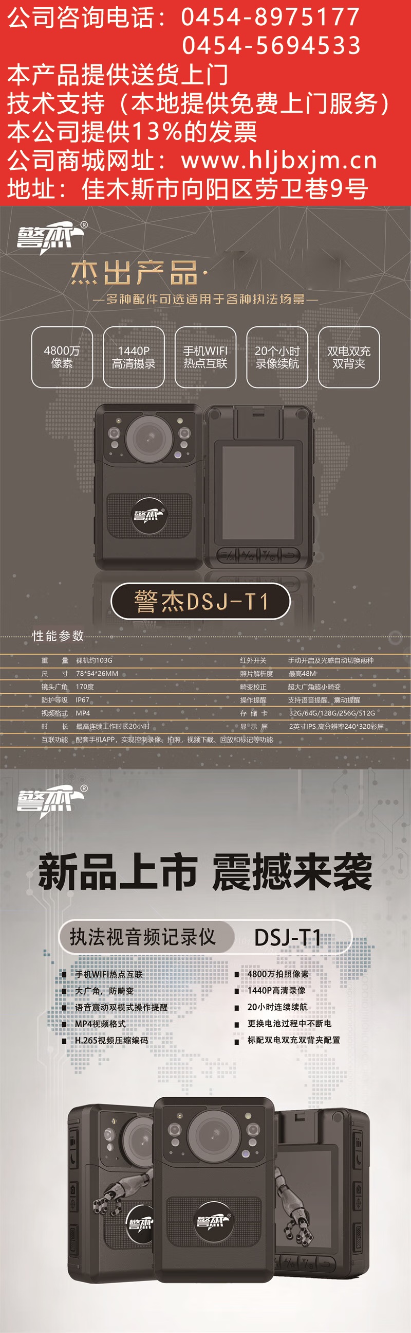 警杰DSJ-T1執(zhí)法記錄儀1440P高清隨身戶外相機(jī)手機(jī)互聯(lián)雙電20h工作續(xù)航 4800萬(wàn)像素 512GB存儲(chǔ)卡 自營(yíng)