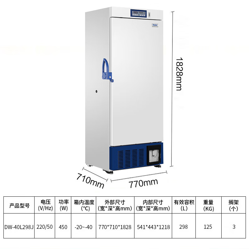 海爾醫(yī)用低溫保存箱 實驗室生物醫(yī)用冷凍低溫冰箱 -25度冷凍冰柜醫(yī)用低溫保存箱疫苗冰箱專用 【DW-30L298J】298升 -30°低溫箱 自營