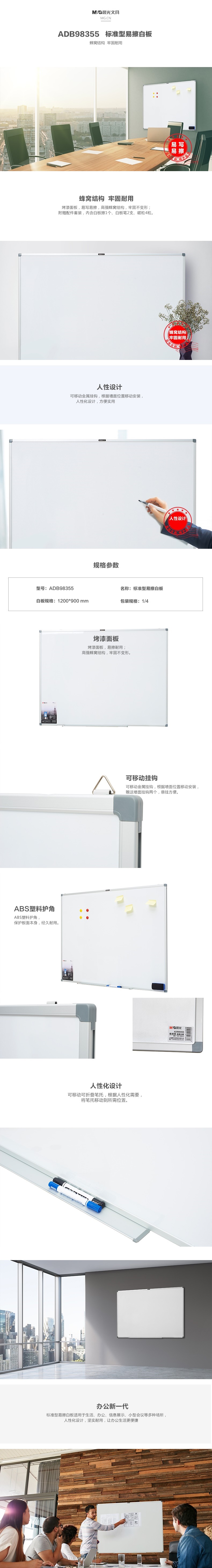 晨光標(biāo)準(zhǔn)型易擦白板900*1200mmADB98355 自營