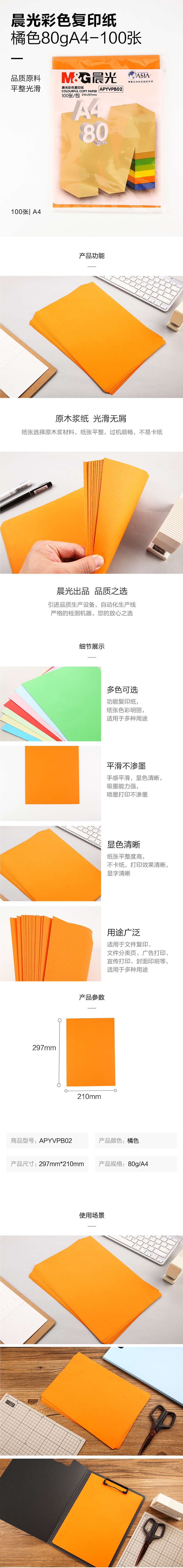 晨光彩色復(fù)印紙橘黃80gA4-100張APYVPB0250 自營(yíng)