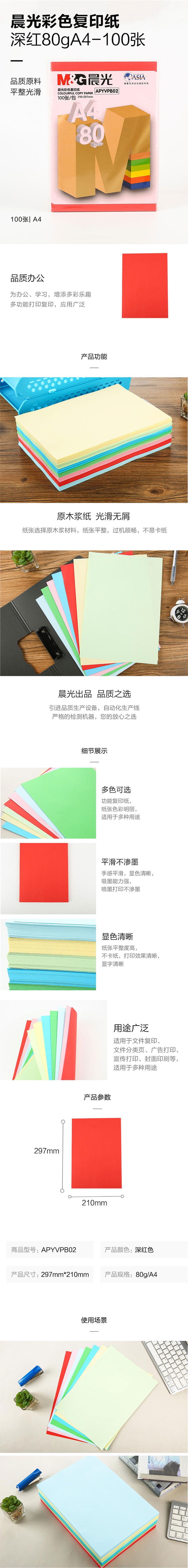 晨光彩色復(fù)印紙深紅80gA4-100張APYVPB0239 自營