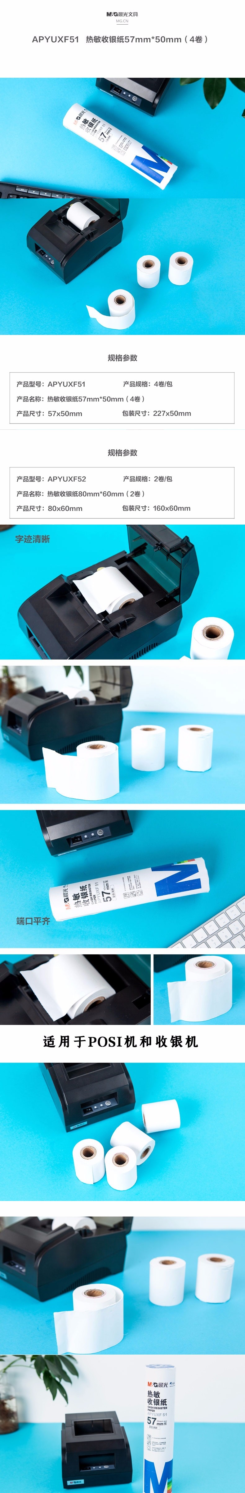 晨光熱敏收銀紙57MM*50MM(4卷)APYUXF51 自營
