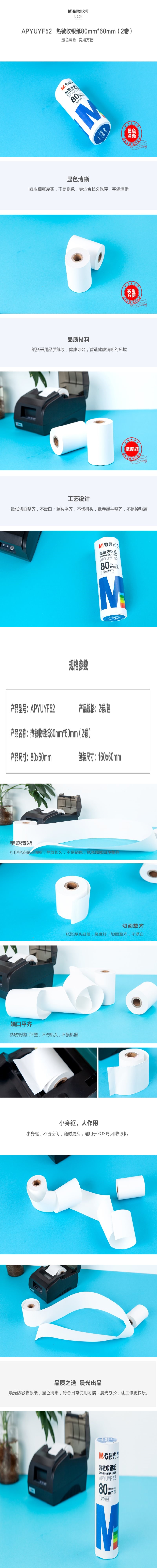 晨光熱敏收銀紙80MM*60MM(6筒 2卷/筒)APYUYF52 自營(yíng)