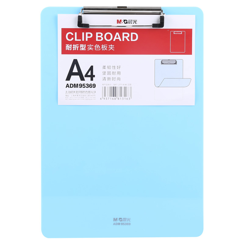 晨光耐折型實(shí)色書(shū)寫(xiě)板夾A4(粉藍(lán))ADM95369N3 自營(yíng)