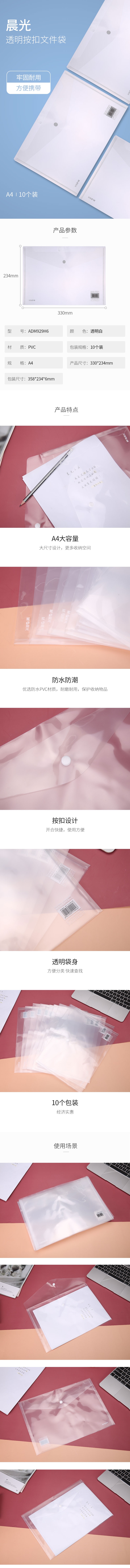 晨光透明按扣文件袋A4 透明白ADM929H6 自營