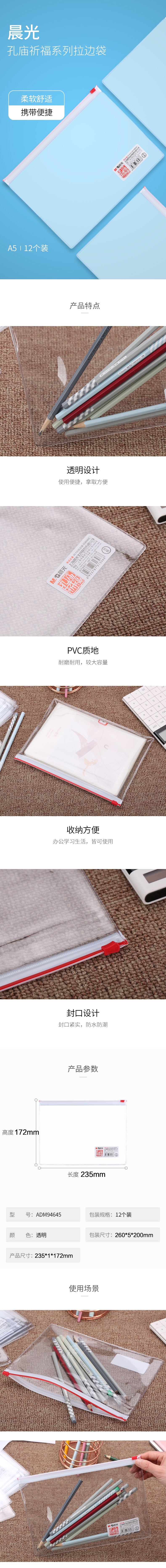 晨光孔廟祈福考試必備A5拉邊袋ADM94645 自營