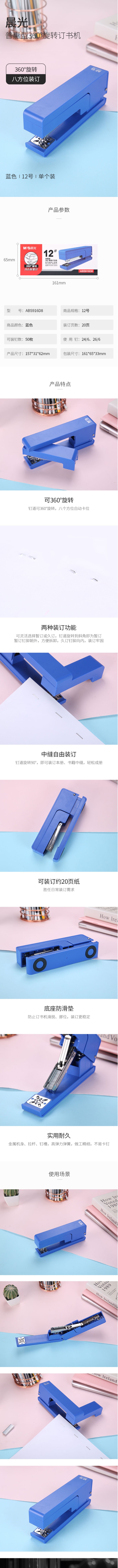 晨光普惠型360°旋轉(zhuǎn)12號(hào)訂書機(jī)藍(lán)ABS916D8 自營(yíng)