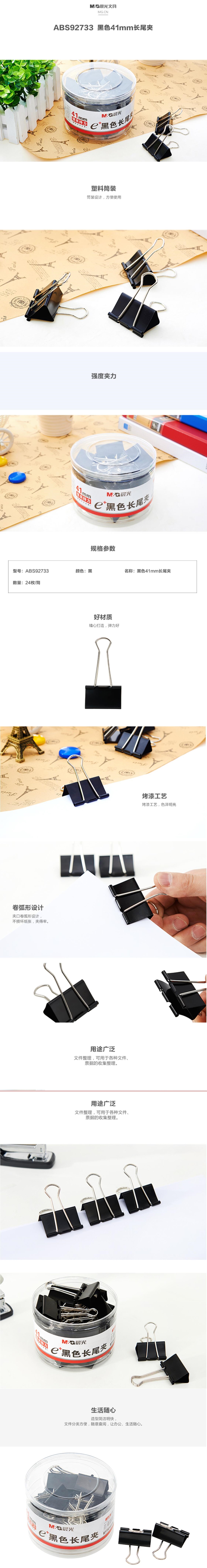 晨光Eplus黑色長(zhǎng)尾夾41mm(筒裝)ABS92733 自營(yíng)