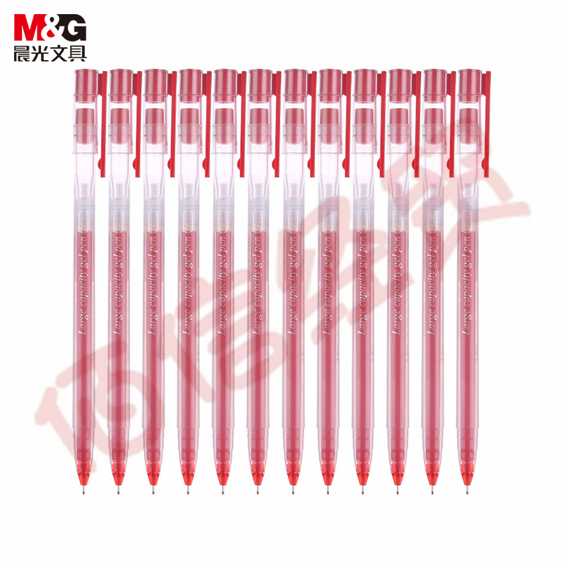 ■晨光0.5mm紅色中性筆-筆桿筆芯一體化水筆 12支/盒AGPY5501 自營