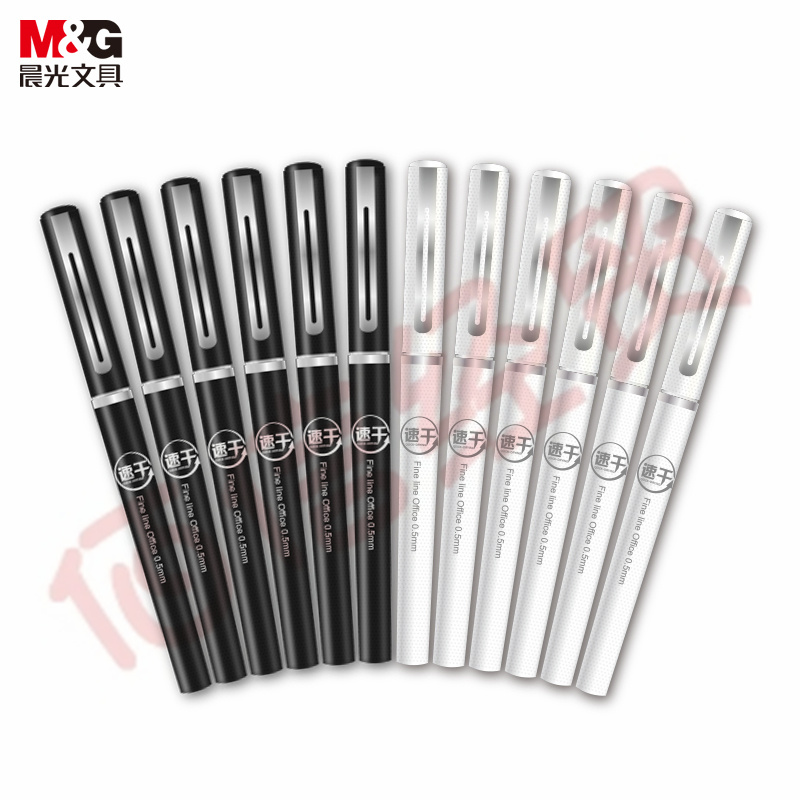 得力(deli)0.5mm黑色中性筆金屬噴漆筆 子彈頭簽字筆 12支/盒