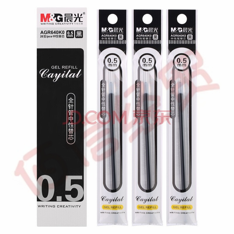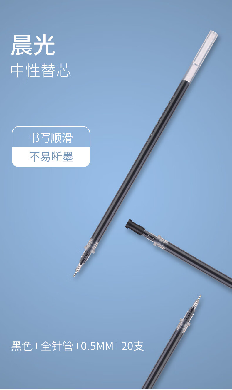 ■晨光05mm黑色中性筆芯全針管簽字筆替芯20支 AGR640K0黑色 自營(yíng)
