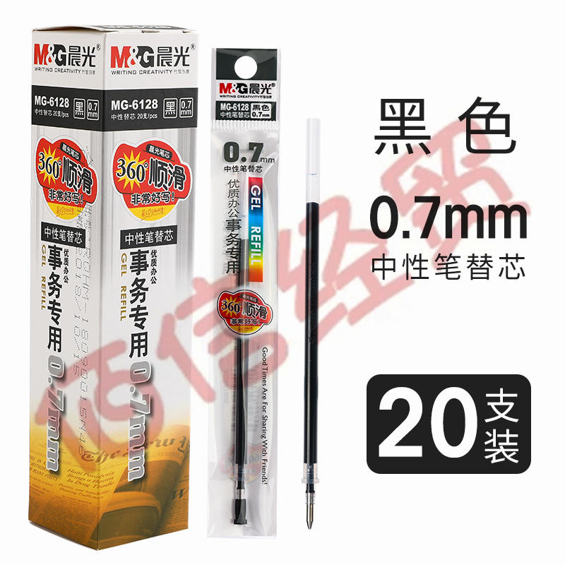 ■晨光-中性筆筆芯0.7mm子彈頭-MG-6128-黑色20支 自營(yíng)