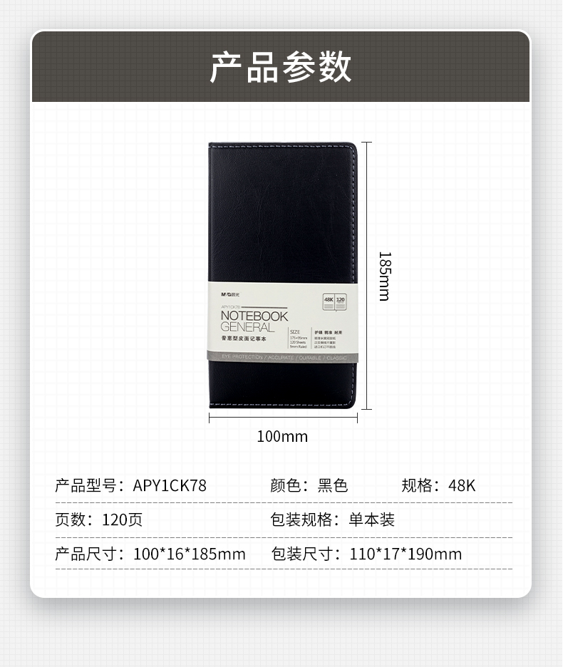¥19.80■晨光(M&G)皮面本 日記辦公記事本筆記本會議記錄本皮面本 普惠型皮面記事本 APYE7P11黑色18K-96頁 3本裝