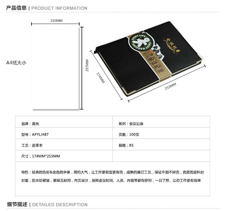 ■晨光(M&G)A5/80張辦公筆記本 會(huì)議記錄皮面本 日記本商務(wù)記事本子 單本裝APYG455D