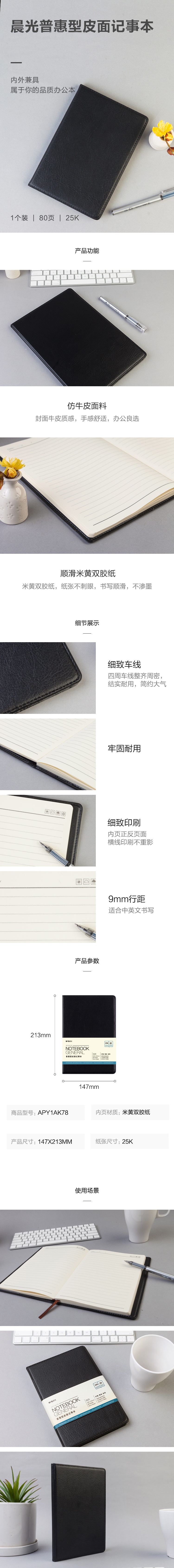 ■晨光(M&G)A5/80張辦公筆記本 會議記錄皮面本 日記本商務(wù)記事本子 單本裝APYG455D